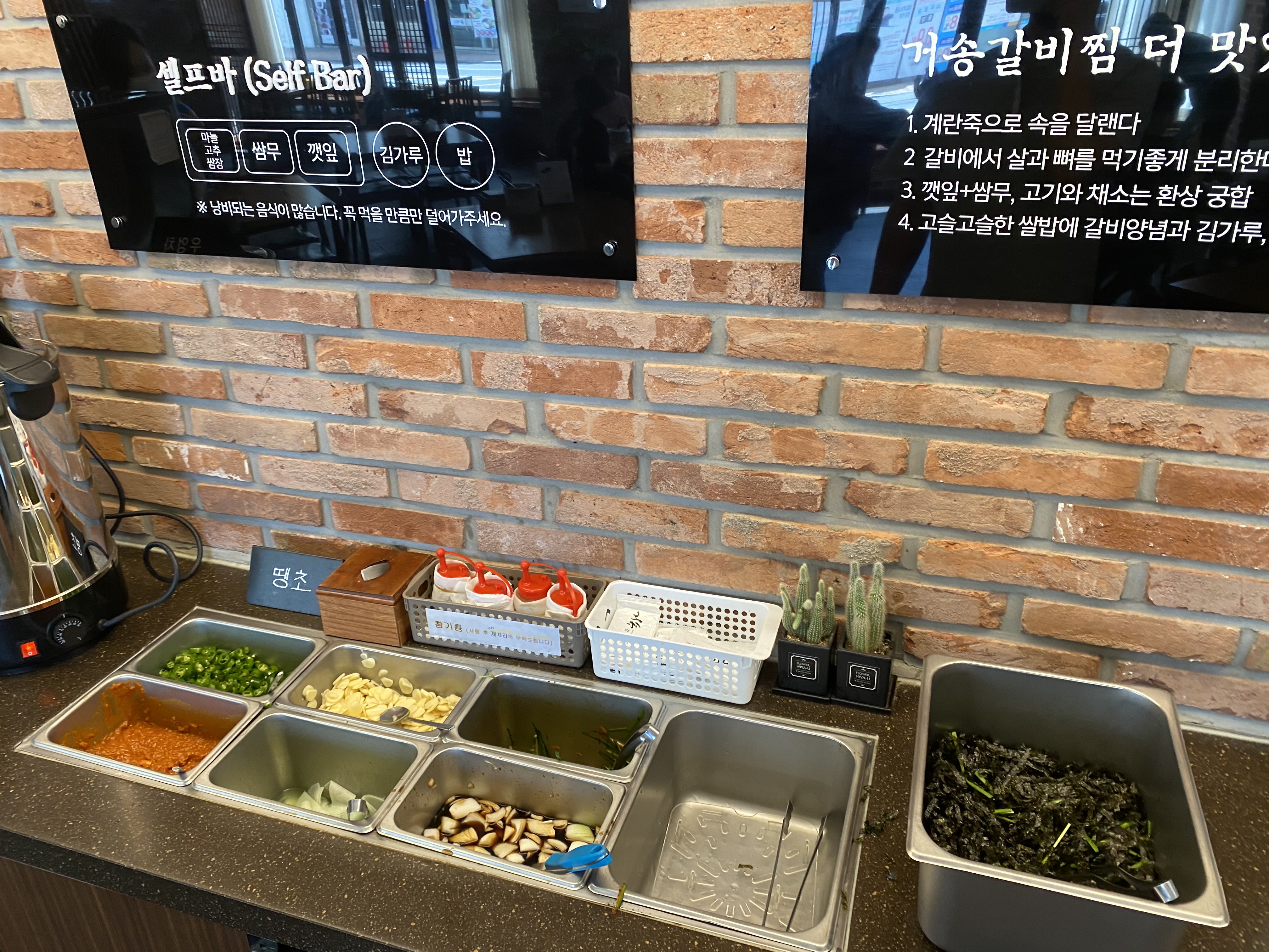 갈비찜이 나오고, 셀프바에서 가져온 것들로 세팅완료!!
