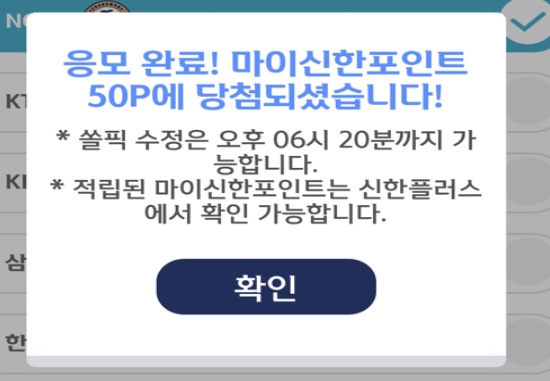 참여방법은 신한 SOL(신한 쏠)앱에서 쏠야구 항목으로 들어가면 할 수 있답니다