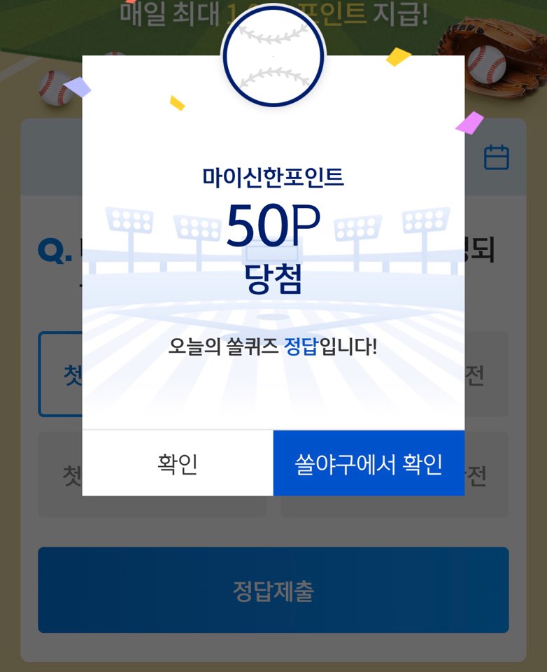 참여방법은 신한 SOL(신한 쏠)앱에서 쏠야구 항목으로 들어가면 할 수 있답니다