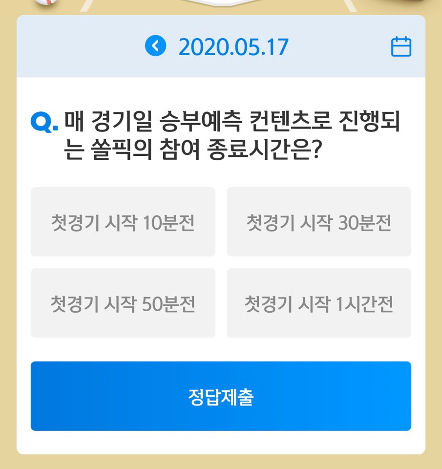 매 경기일 승부예측 컨텐츠로 진행되는 쏠픽의 참여 종료 시간은?