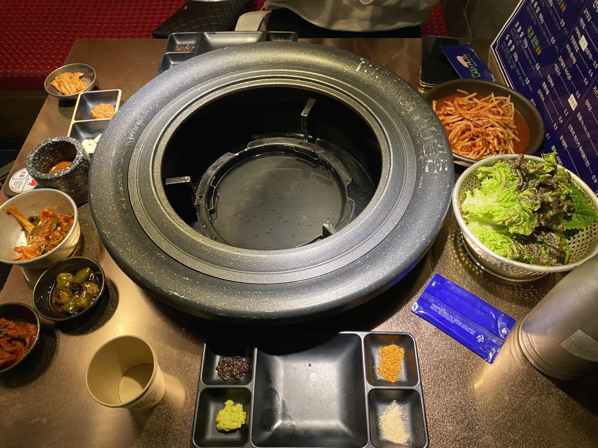 여기 불판이 매우 크고 다른 고기집에서는 잘 볼수 없던 불판이다.