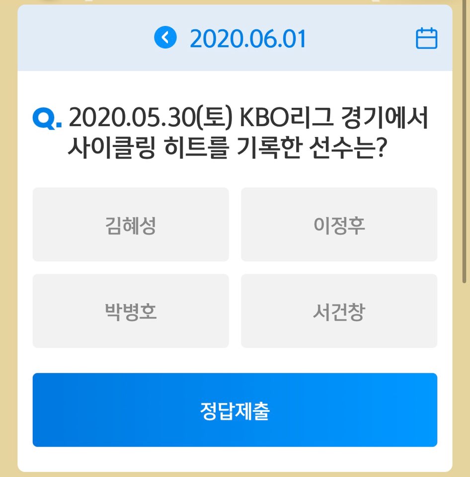 6월 1일 월요일 프로야구 중엔 쏠퀴즈 문제는