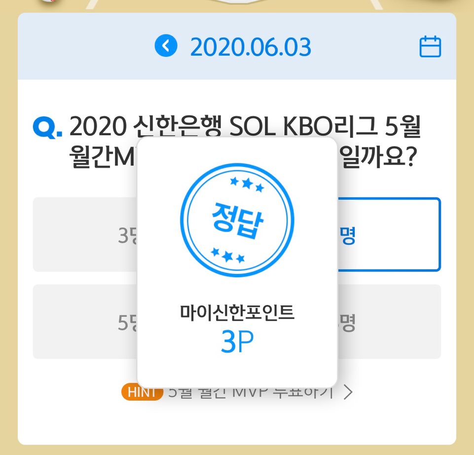 2020 신한은행 SOL KBO리그 5월 월간 MVP 후보선수는 몇명일까요?