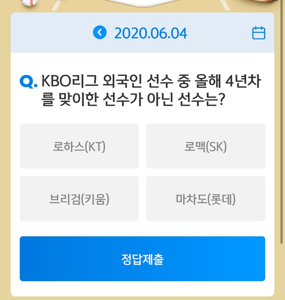 마차도는 올해 영입이 된 선수라는 것을 알고 있었기 때문에 따로 검색 찬스 없이도 쉽게 맞출 수가 있었네요