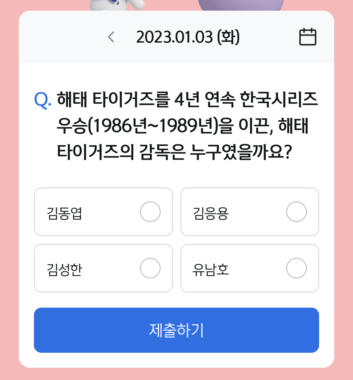 어제 문제와 이어지는 문제네요 조만간 삼성의 감독을 묻는 문제도 곧 출제가 될까 싶기도 하네요