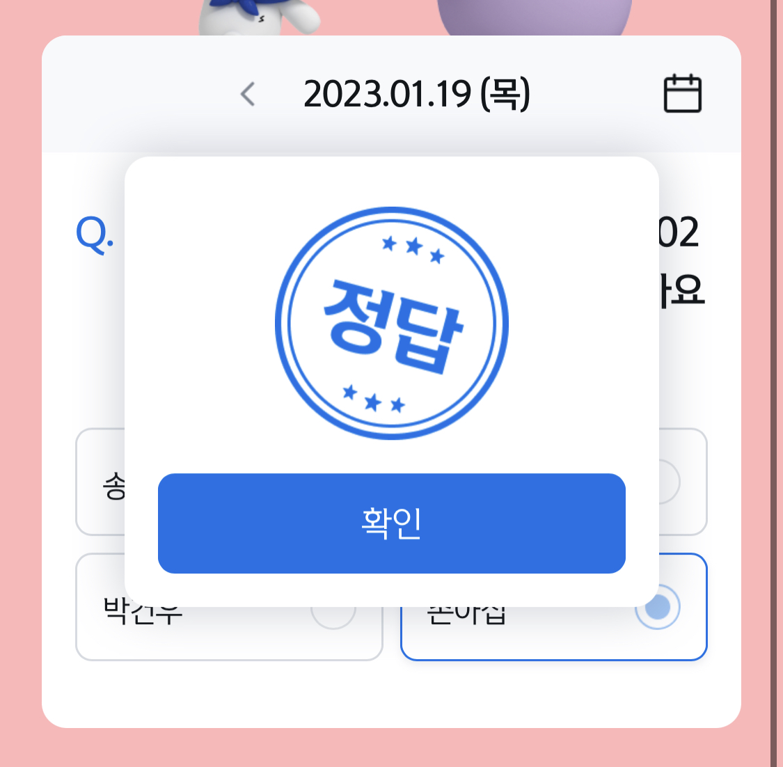 | 1월 17일 쏠퀴즈 다음 중 연고지가 서울이 아닌 팀은? (0) | 2023.01.17 |
