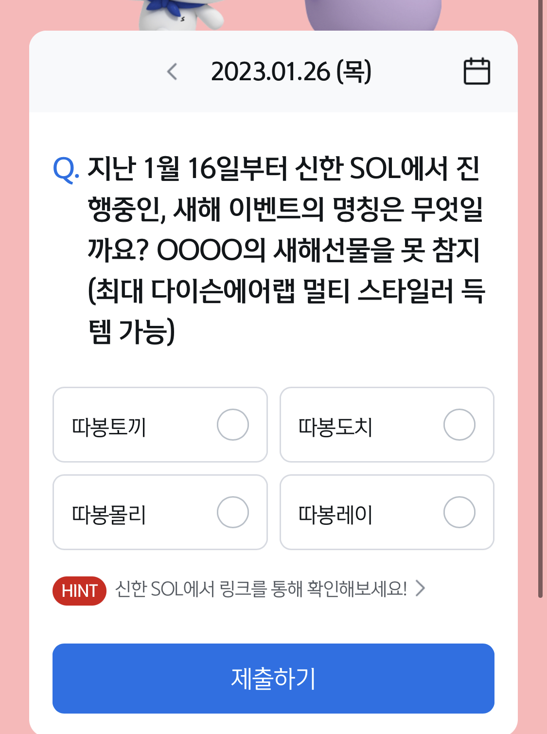 1월 26일 신한은행 쏠퀴즈입니다