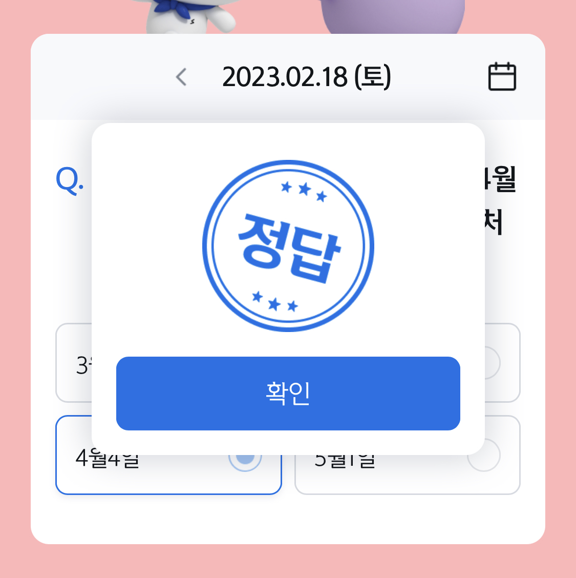 | 2월 14일 쏠퀴즈 KBO리그 최초로 시즌 MVP와 신인왕을 동시 수상한 선수는?(2006년) (0) | 2023.02.14 |