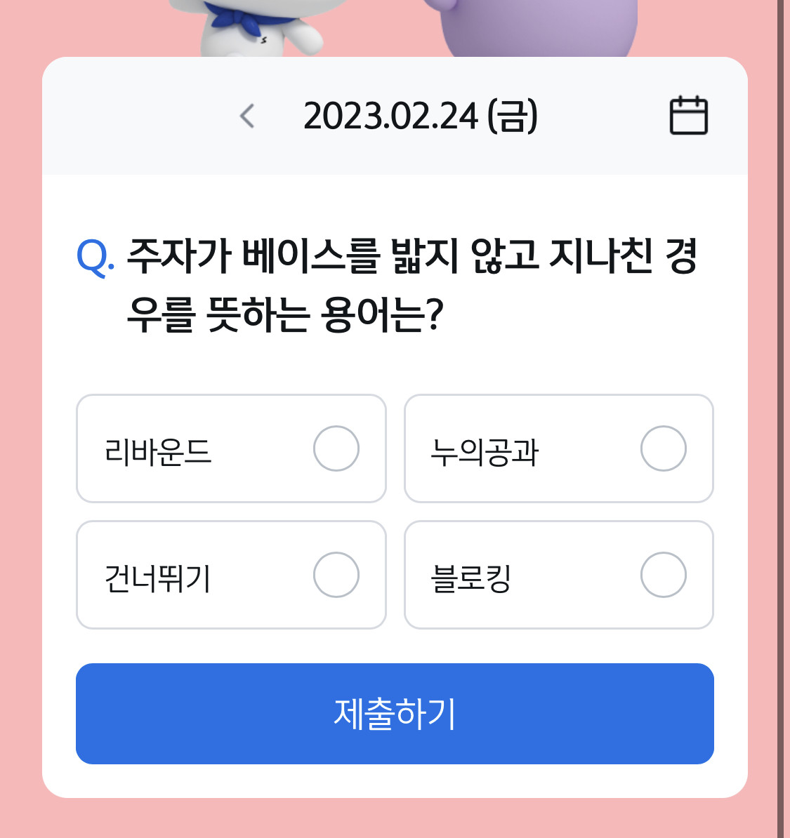 주자가 베이스를 밟지않고 지나친 경우를 뜻하는 용어는?