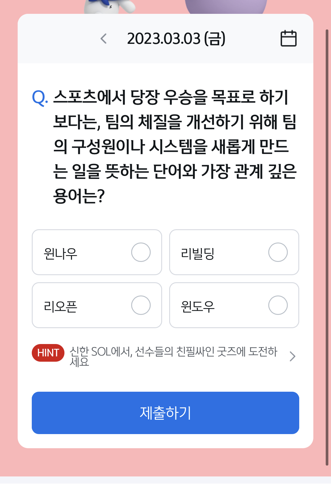스포츠에서 당장 우승을 목표로 하기보다는, 팀의 체질을 개선하기 위해 침의 구성원이나 시스템을 새롭게 만드는 일을 뜻하는 단어와 가장 관계 깊은 용어는?