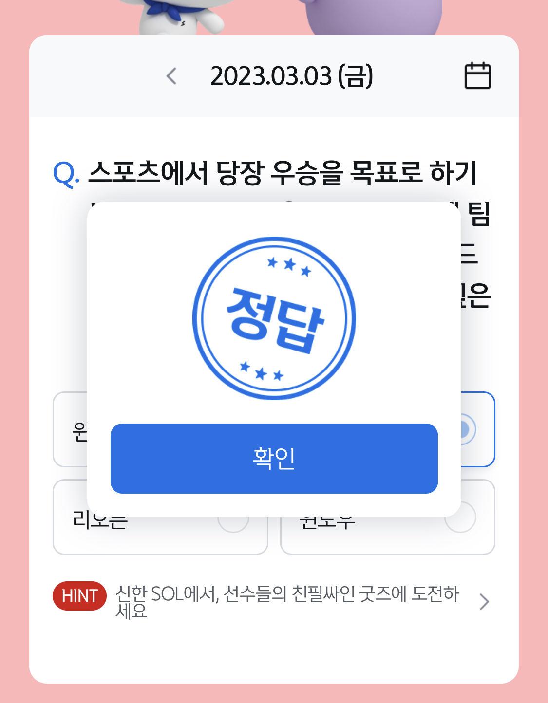 정답시 3에서 1000포인트까지 획득이 가능하며, 계좌로 인출이 가능합니다