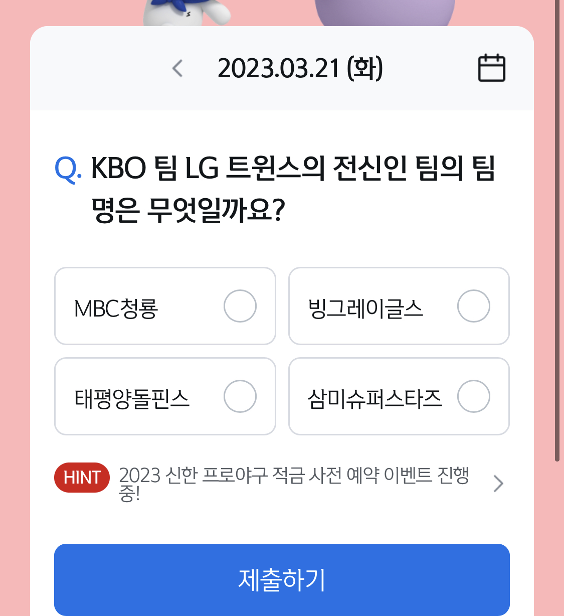 정답은 MBC 청룡 입니다