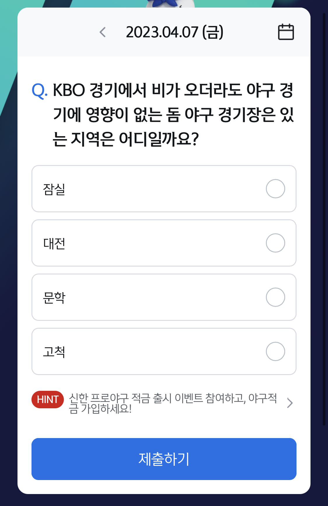 | 4월 2일 쏠퀴즈 2023 신한 프로야구 적금의 판매종료 예정일은? (0) | 2023.04.02 |