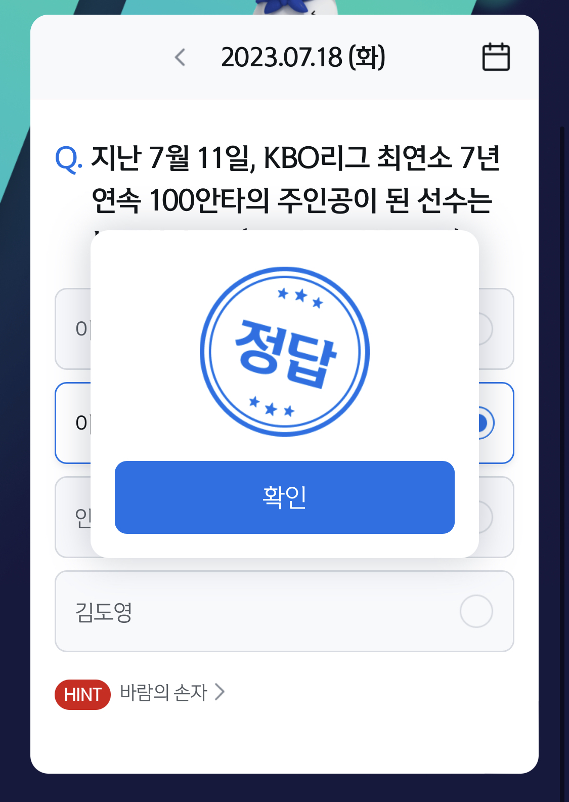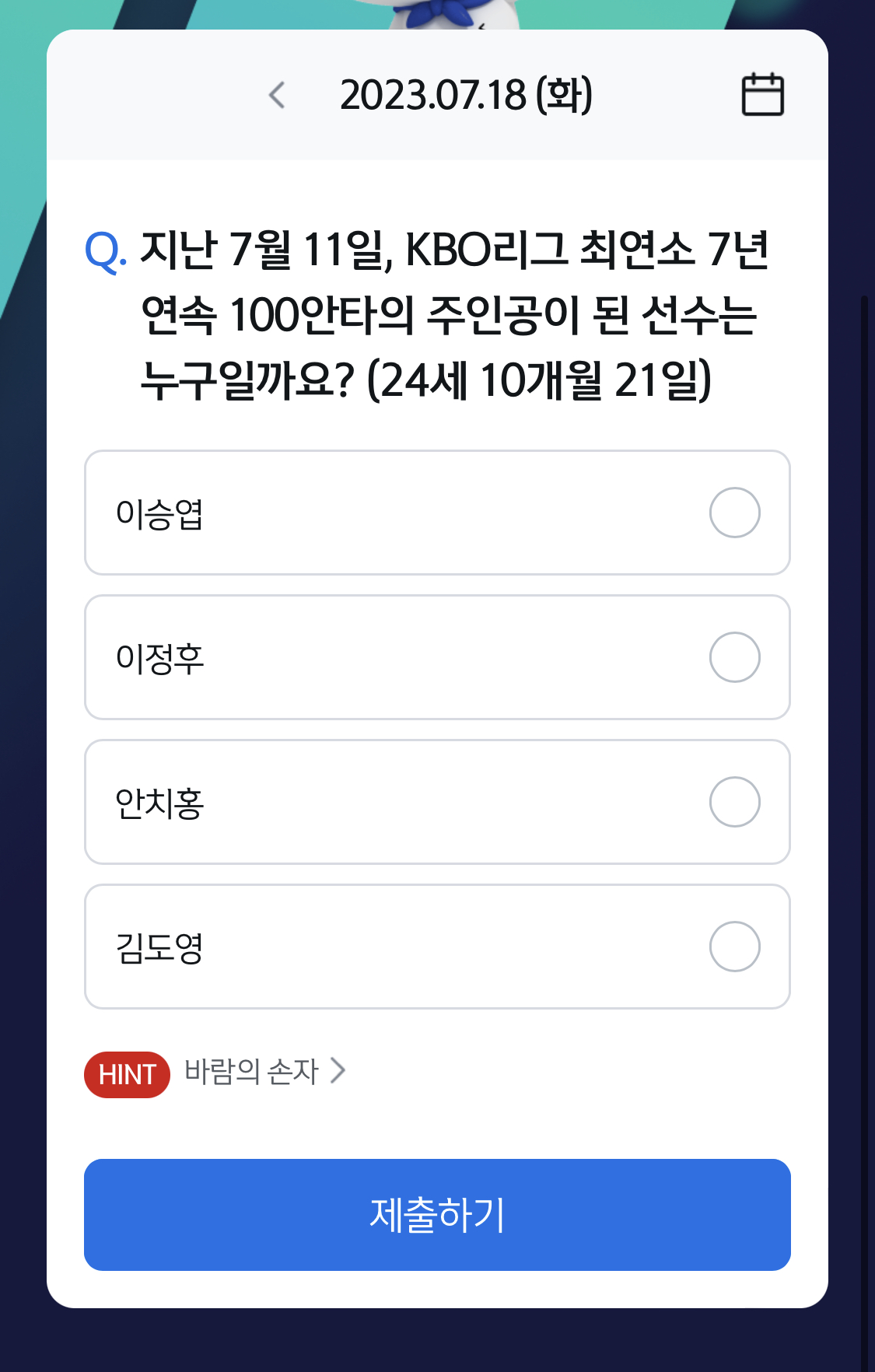 지난 7월 11일, KBO 연속 100안타의 주인공이 된 선수는 누구일까요?(24세 10개월 21일)