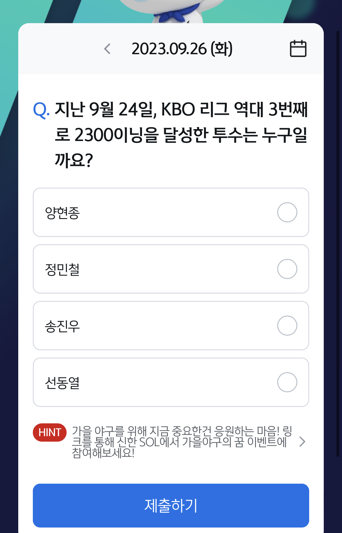 지난 9월 24일, kbo리그 역대 3번째로 2300이닝을 달성한 투수는 누구일까요?