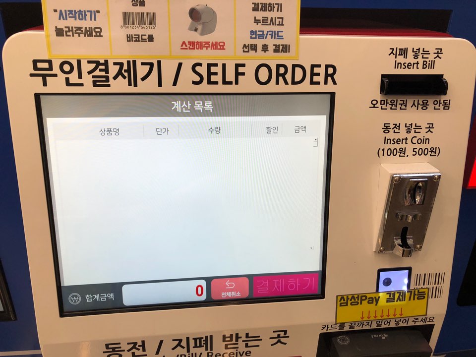 따로 직원이 있지 않기 때문에 직접 무인 결제를 이용해야 됩니다
