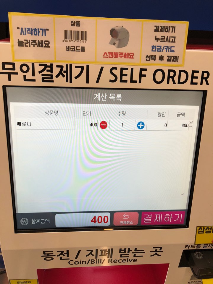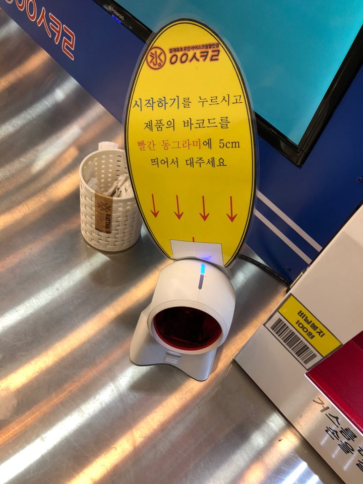 바로 앞에 있는 바코드 찍는 기계가 있습니다
