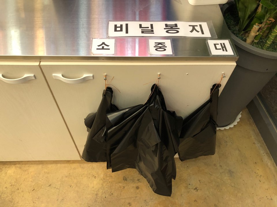비닐봉지가 소, 중, 대 사이즈로 있고여