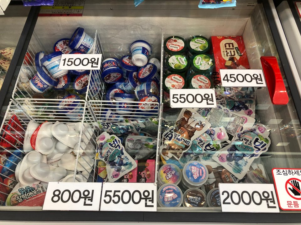 일반 바 종류 아이스크림은 4~500원대, 콘류는 800원 정도 였습니다