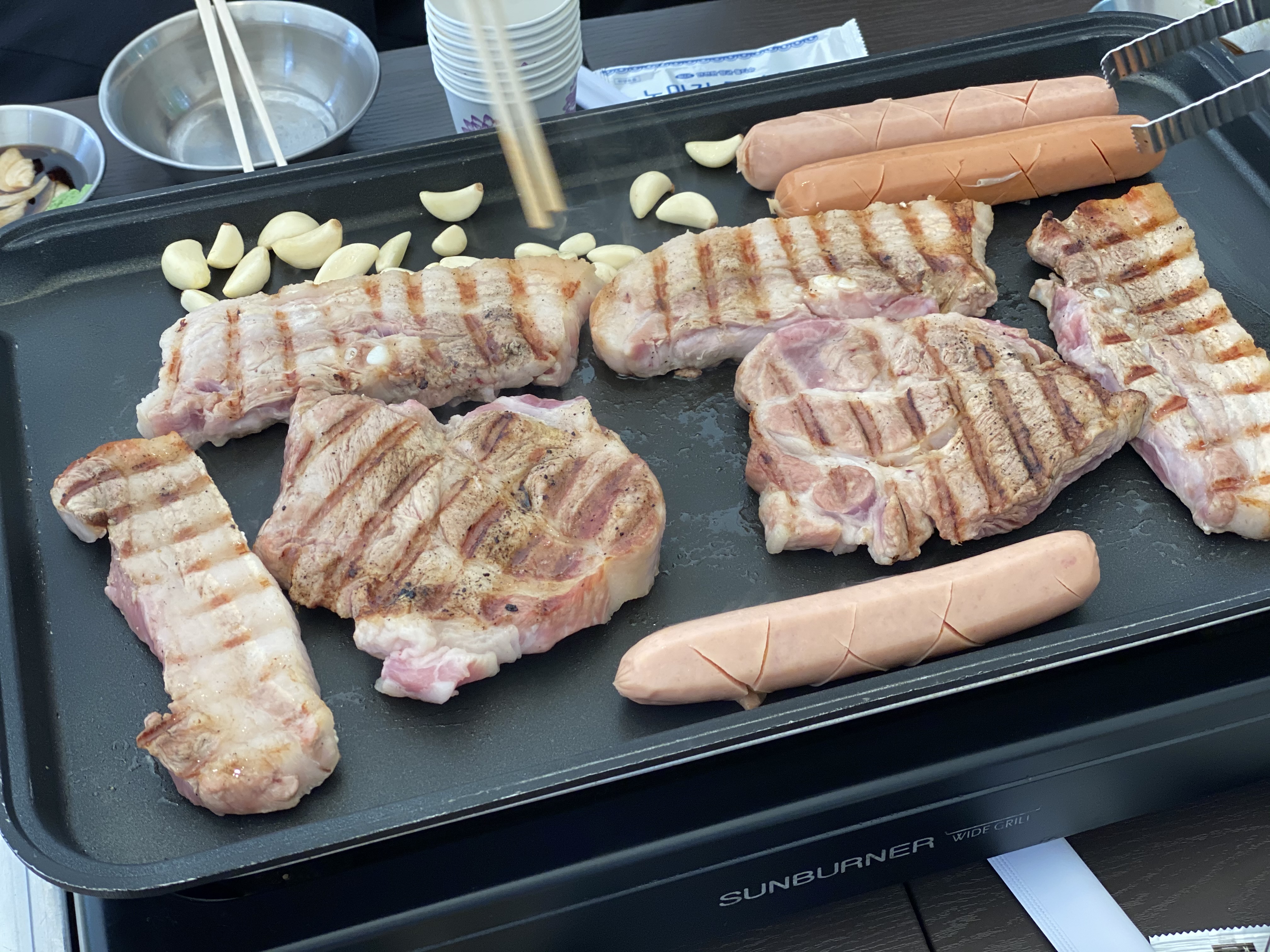 한번 초벌이 되어 나왔지만, 고기가 두꺼워서 생각보다 굽는데 오래 걸린 느낌?