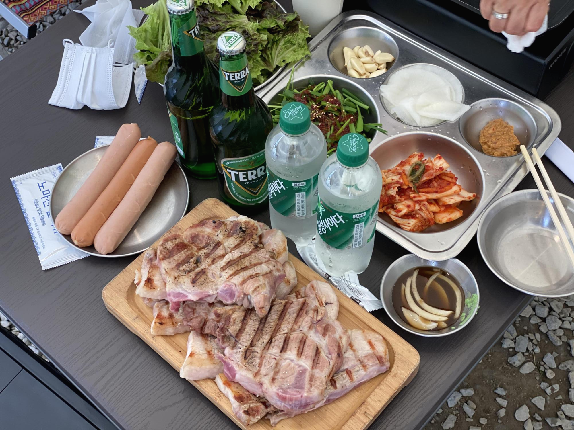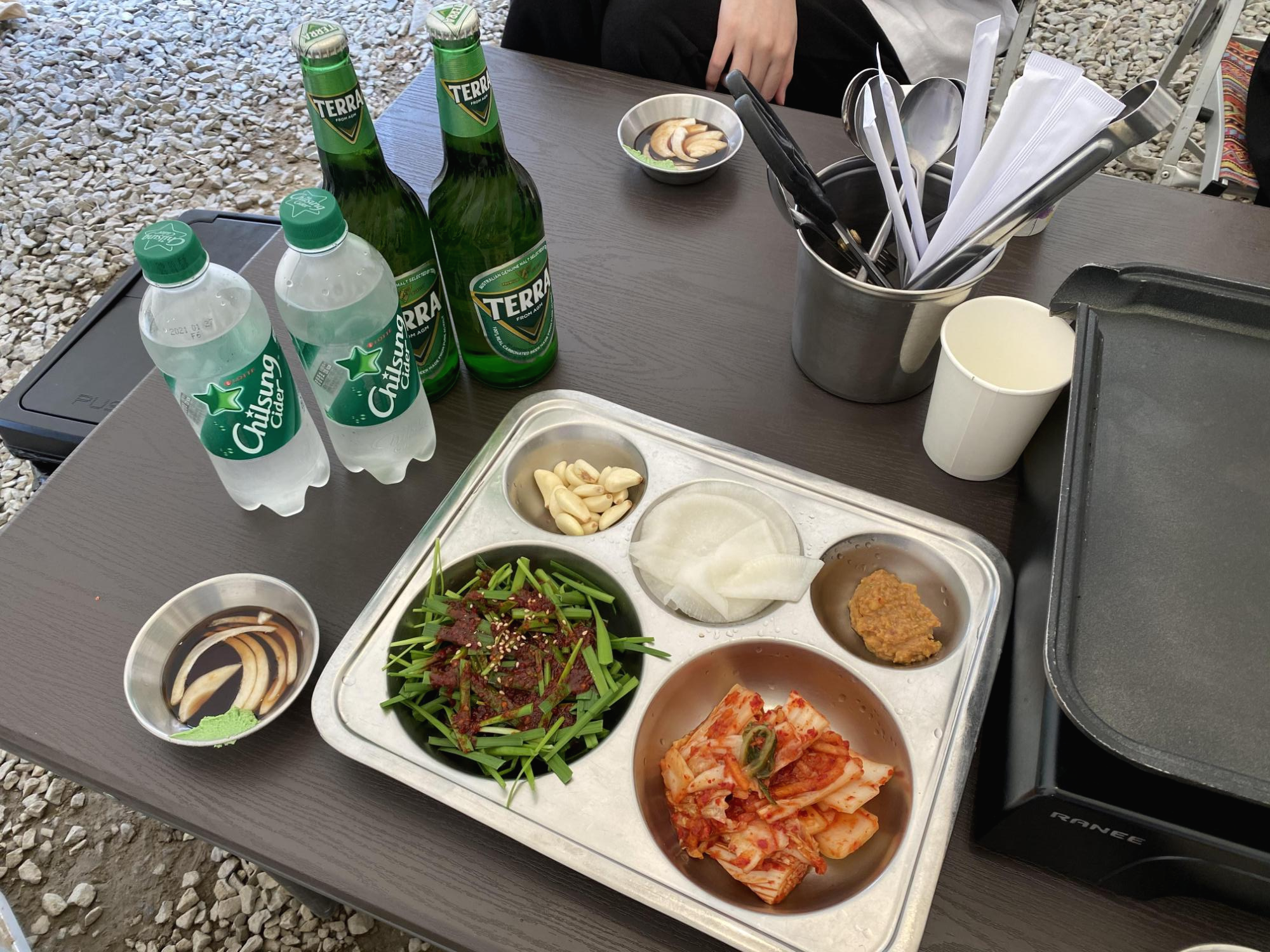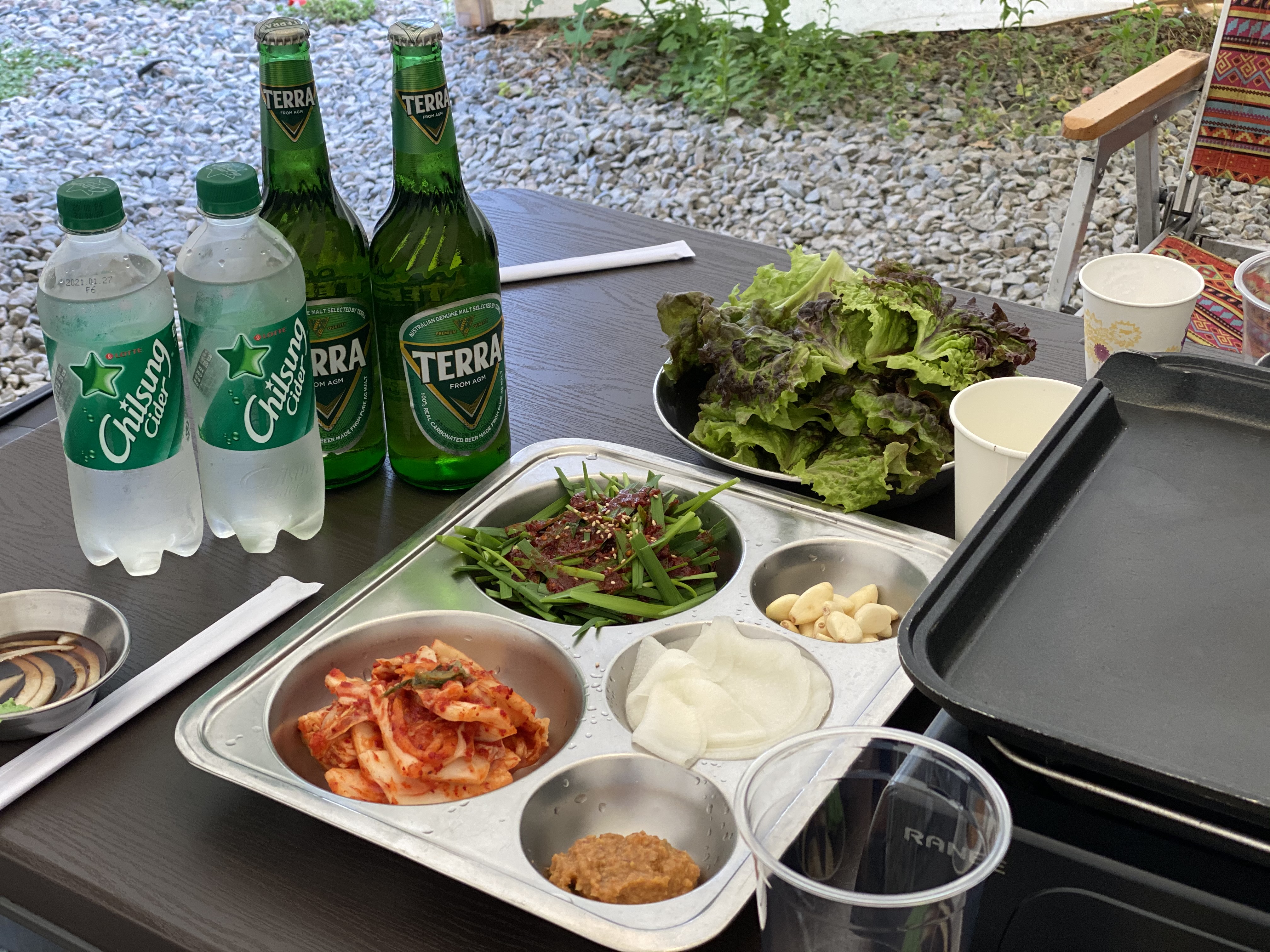 인디언 텐트안에 처음 세팅후에, 추가 쌈, 반찬은 여기서 리필을!!